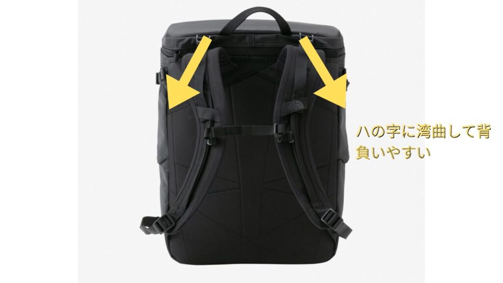 - 初代は垂直に近かったハーネスの付け根を、BCヒューズボックス2では「ハの字型」に変更されました。→これにより日本人の肩のラインに自然にフィットしするので、荷重が分散し疲れにくい